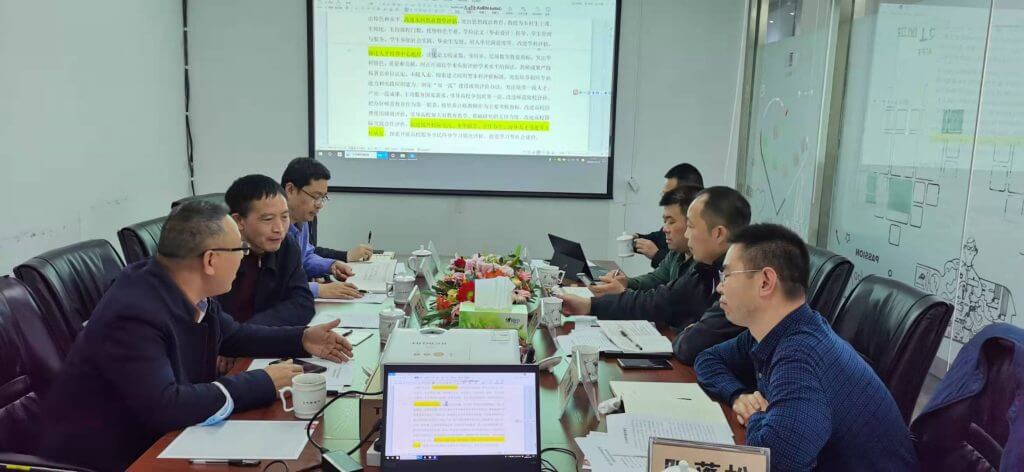 贵幼高专党委书记李华荣、校长翟理红和树生智慧总经理阳蓬松就活动内容进行交流